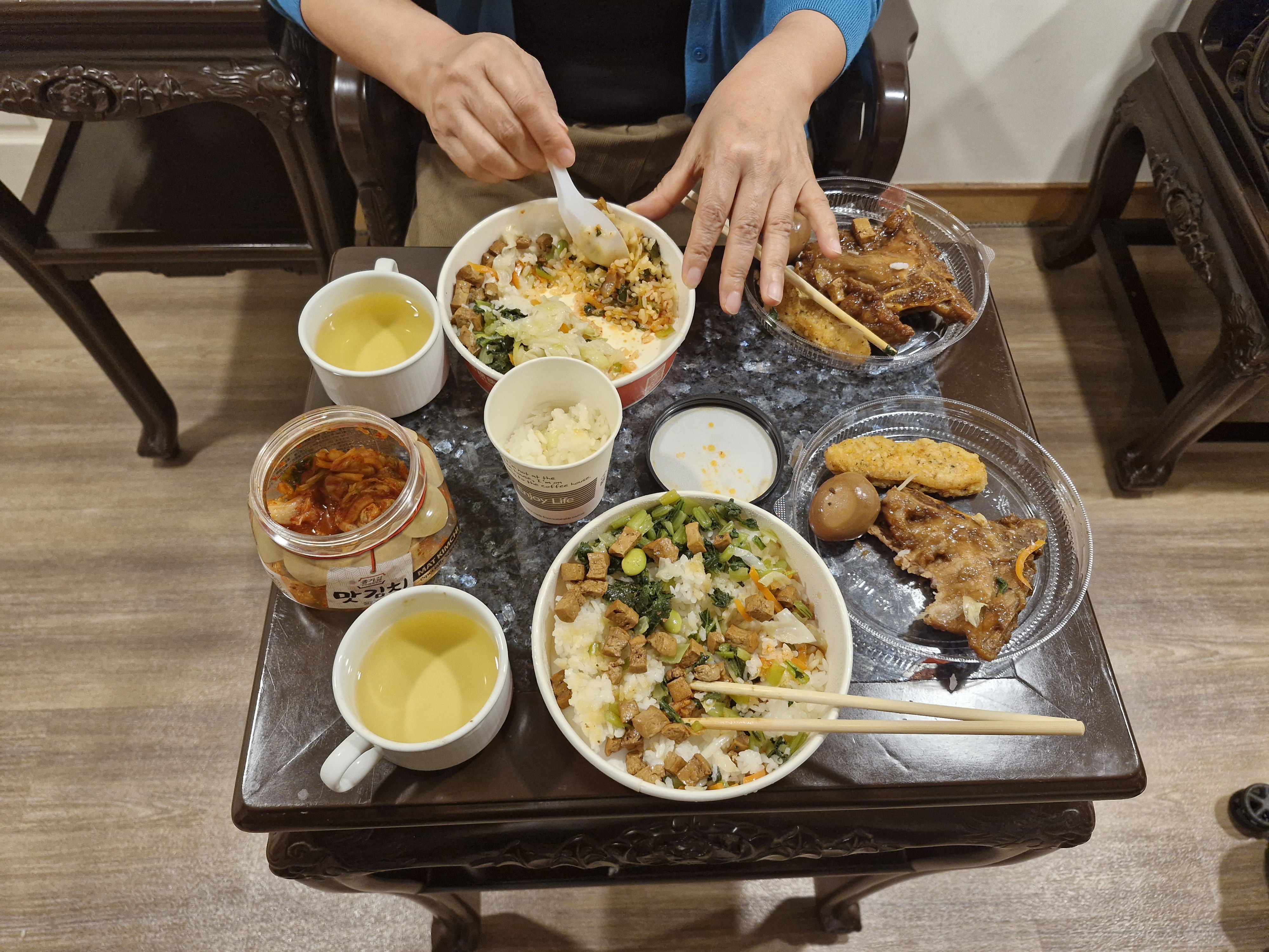 호텔 조식 뷔폐 때 충분히 야채를 먹는 것이 모든 면에서 좋다. 한 번씩 저녁에는 마트에서 음식을 사서 먹었다.